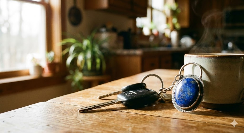 Ключи лежали на столе. Синий камешек блестел в свете лампы.