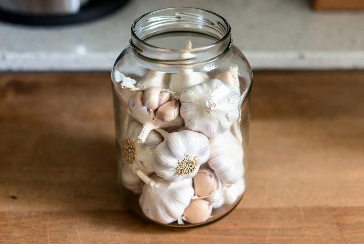Каждый год одна и та же история: соберёшь чеснок в августе, разложишь по ящикам или косам – а к февралю половина высохла или проросла. Помню, как раньше у меня целые головки превращались в мумии, а весной приходилось покупать на рынке по заоблачным ценам. Перепробовал кучу способов, пока не наткнулся на метод с обычной трёхлитровой банкой. Сейчас расскажу, как это работает. Первый раз про банки услышал от соседки лет пять назад. Она показала мне свою кладовку – там стояли рядами стеклянные банки с чесноком, и головки выглядели так, будто их только вчера выкопали. Я тогда скептически отнёсся: ну что за ерунда, думал, чеснок же должен дышать, а тут стекло. Но попробовал – и понял, что это действительно работает. Банка создаёт особый микроклимат. Главное – она защищает от резких перепадов влажности, которые губят урожай быстрее всего. В квартире то батареи жарят, то окна открываешь для проветривания – чеснок не выдерживает таких качелей. А в банке всё стабильно, температура меняется плавн