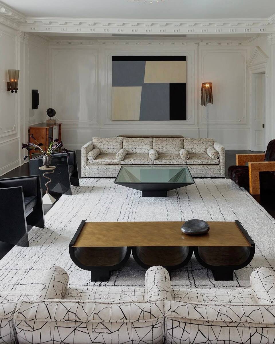 Но есть один рабочий приём: выбрать главный принт. В нём должны быть собраны цвета всей вашей колористической схемы. Он становится отправной точкой — дальше всё выстраивается логично. Где его использовать — зависит только от смелости: • акцентные обои • шторы • ковёр • обивка дивана • покрывало • кресло • подушки Картина тоже может стать главным «принтом», если занимает заметное место в пространстве. И это очень удобный способ собрать интерьер: сначала выбираем искусство, потом под него — текстиль и детали. Дальше подключаем второстепенные принты. В них повторяются отдельные оттенки из главного, но: • в другой пропорции • в другом масштабе рисунка • с другим ритмом Например: • крупный цветочный рисунок + мелкая геометрия • активный орнамент + спокойная полоска И важно добавить принты в приглушённых, нейтральных оттенках из той же гаммы. Они уравновесят композицию и сделают интерьер глубже и спокойнее. Принты — это про смелость? Дружите или боитесь? Фото интерьера kelly Wears