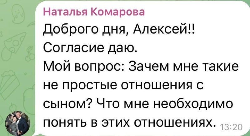 Через эти отношения вы приходите к пониманию себя, своего Я. Сын Ваш великий учитель, принимайте уроки и проживайте их достойно! Я верю в вашу мудрость 🤗♥️