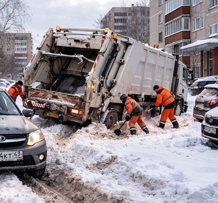 Регоператор объяснил, почему мусоровозу тяжело проехать в заснеженный двор
