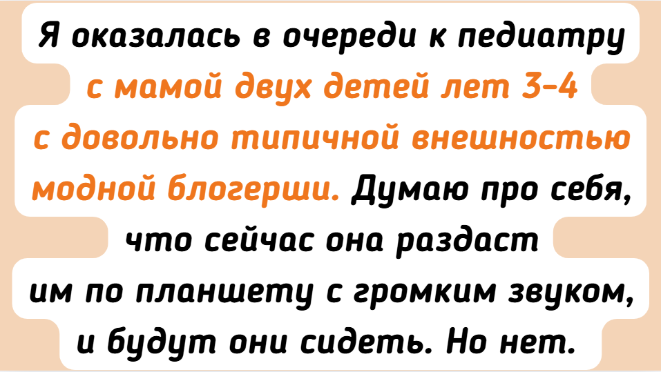 - Я оказалась в очереди к педиатру с мамой двух детей лет 3-4 с довольно типичной внешностью модной блогерши. Думаю про себя, что сейчас она раздаст им по планшету с громким звуком, и будут они сидеть. Но нет. Она играла с ними в шахматы на плиточном полу перед кабинетом, причем задавала им задачки типа: «Я король, ты конь, вставай сюда и попробуй поставить мне мат в 3 хода». © silvara.v