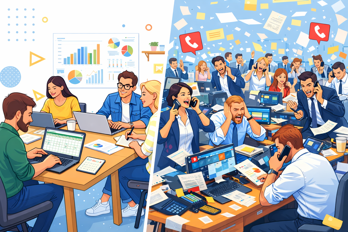 В маленьких командах до 10 человек Excel и звонки коллегам ещё работают. Но как только число сотрудников превышает 20 — начинаются системные сбои.