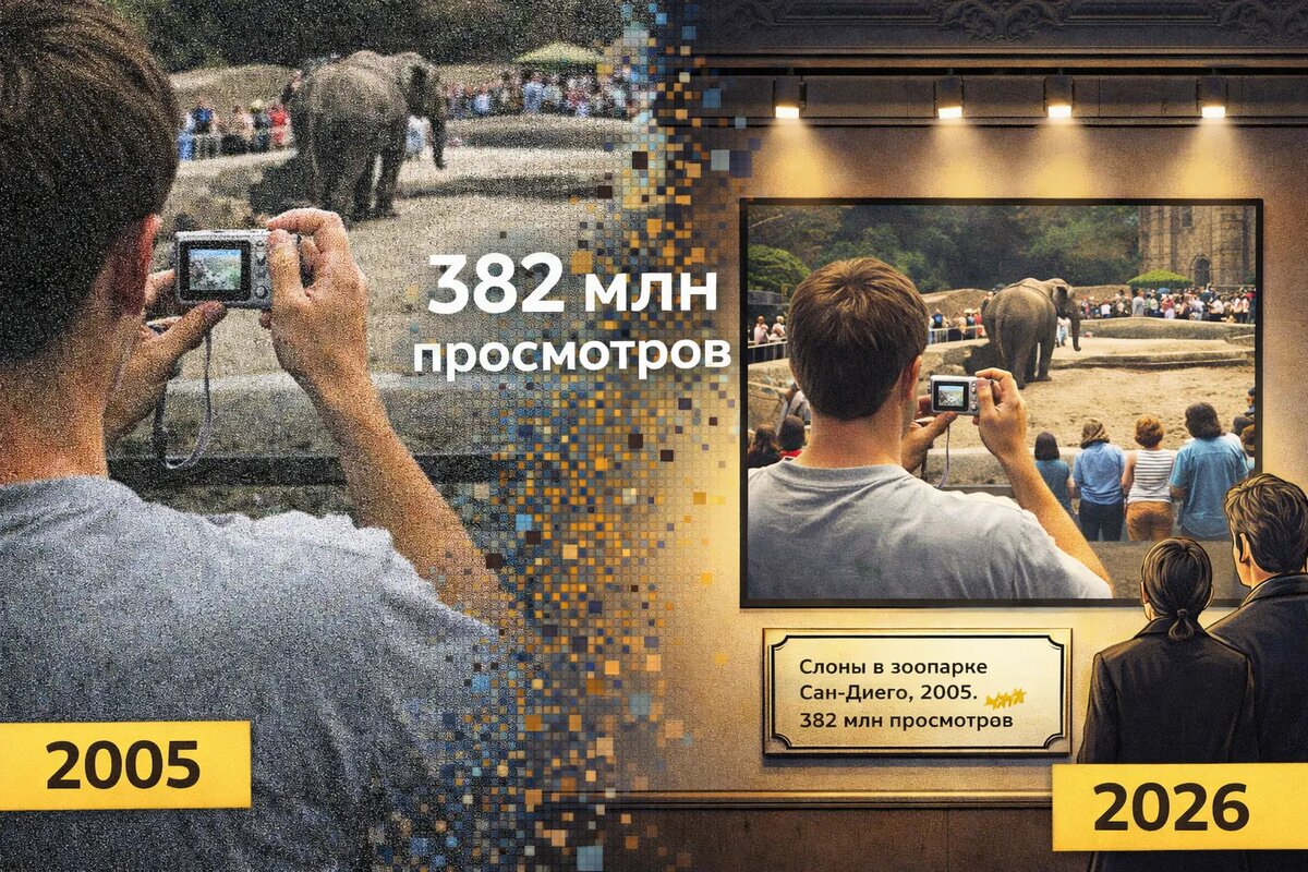 Дизайнеры воссоздали первую страницу YouTube 2005 года с роликом «Я в зоопарке» и выставили в английском Музее Виктории и Альберта. Об этом сообщили представители музея в соцсети X. Пользователь jawed выложил первое видео в истории YouTube 4 апреля 2005 года. В коротком ролике Джавед Карим (так зовут пользователя) рассказывает про слонов в зоопарке Сан-Диего. Сейчас у видео больше 382 млн просмотров.