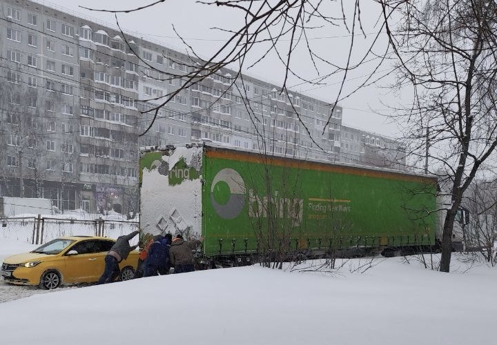 В Туле мужчины помогли водителю фуры, застрявшей на улице Курковой