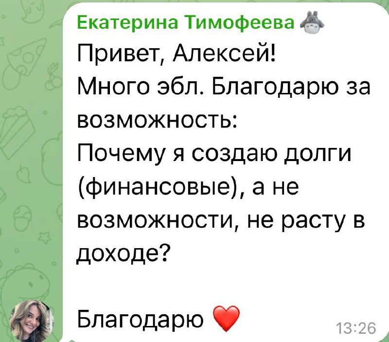 Создавать долги намного проще, чем расти. Страх роста из-за отсутствия веры в то, что можно что-то изменить в своей жизни. Найдите ту ситуацию, которая уклада у вас эту веру и проработайте 🤗♥️