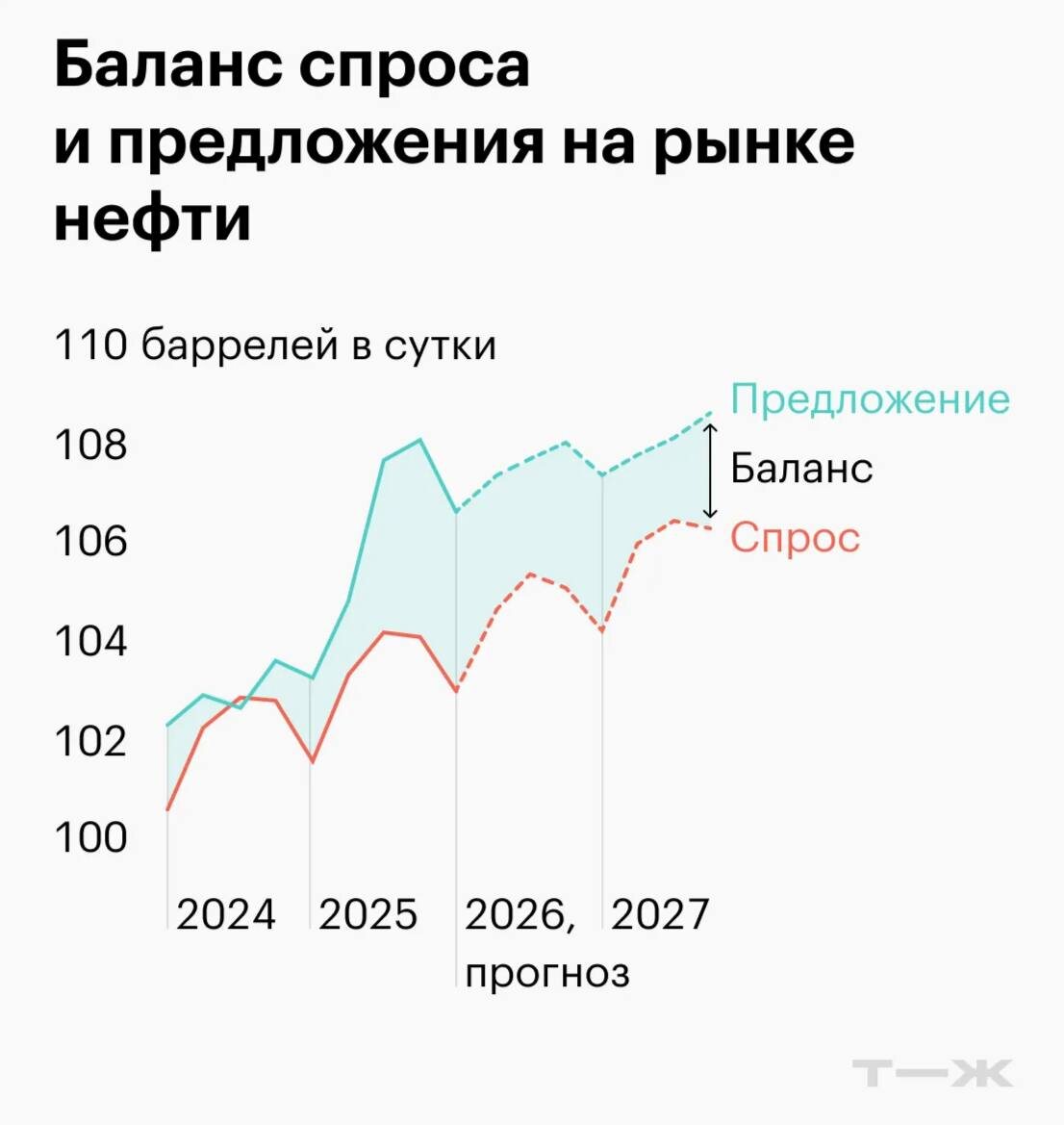 2025 год оказался тяжелым для нефтяного рынка: котировки нефти марки Brent рухнули на 19% — с 75,1 до 60,9 $ за баррель