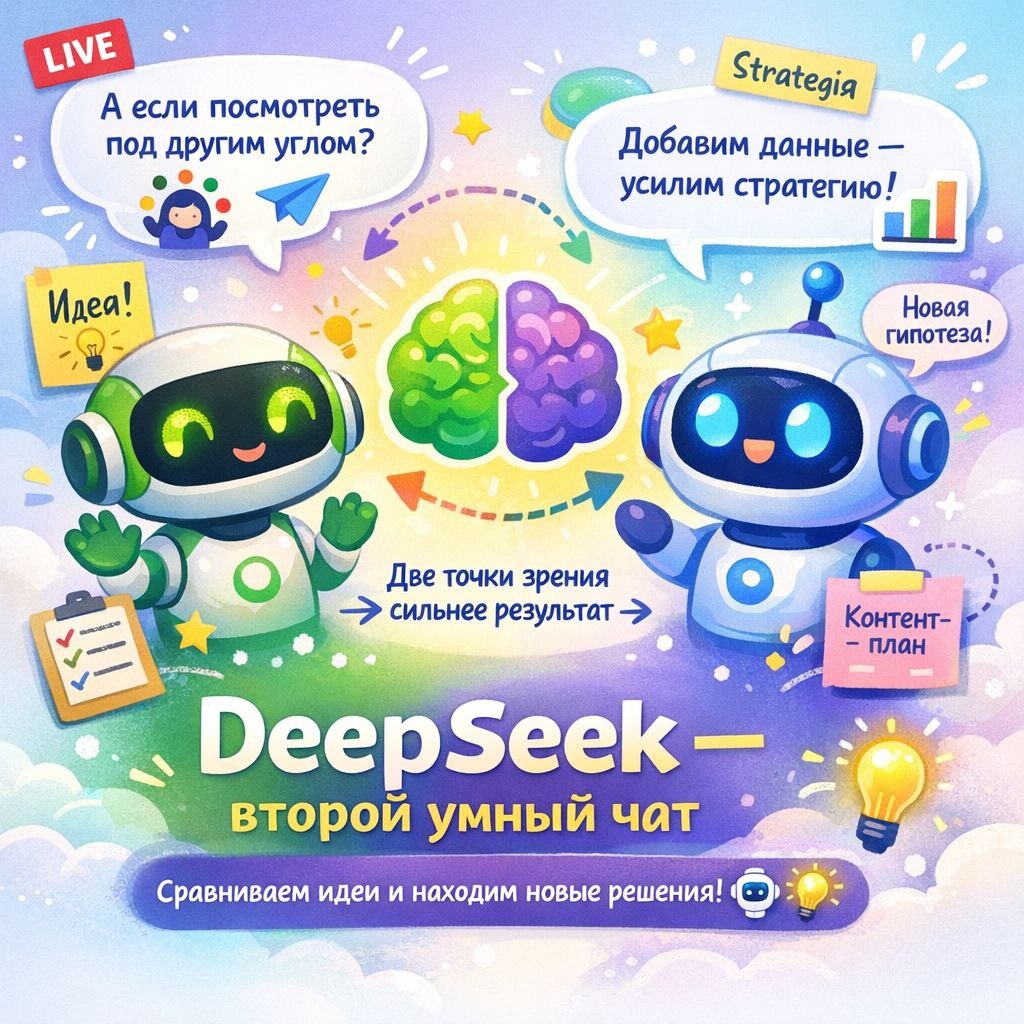 🧠🤖 В пятницу, 20 февраля, в 14:00 в чате бесплатного обучения, разберёмся, чем этот “умный чат” может удивить даже тех, кто уже освоил ChatGPT. Казалось бы, зачем ещё один инструмент? А вот когда нужно сравнить идеи, получить второе мнение или “чтобы кто-то подсказал, где я туплю” - тут DeepSeek может реально выручить. На эфире Надежда Лисиенко: — покажет, как DeepSeek помогает наводить порядок в мыслях (даже если они скачут как лотерейные шарики 🤹♂️) — объяснит, почему для анализа идей и стратегий он удобнее некоторых привычных сервисов — сравнит ответы DeepSeek и ChatGPT на одни и те же вопросы: где “читает мысли”, а где лучше советует по делу После занятия перестанет казаться, что “ИИ - это только ChatGPT и всё, другого не надо”. Возможно, у кого-то появится даже лёгкая зависть: почему не попробовал раньше? 😅 Будет интересно - даже если просто любишь сравнивать и ищешь новые лайфхаки для своих задач.👇👇👇 Завтра - 20 февраля в 14:00 по мск в чате бесплатного обучени