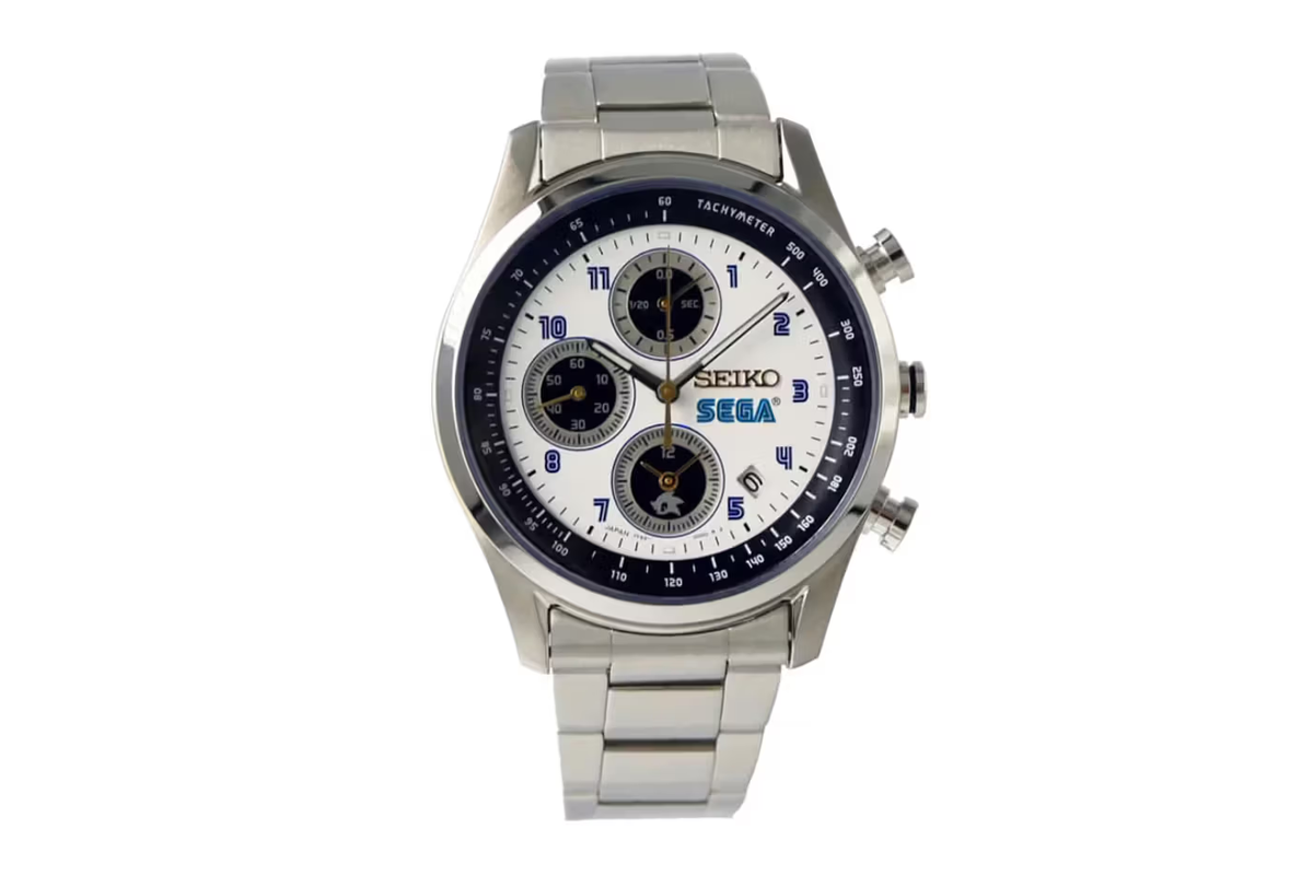 Когда две легенды из Японии объединяются, результат неизбежно вызывает улыбку, особенно если одна из них подарила миру Соника, а другая десятилетиями делает одни из лучших доступных часов на планете. Seiko и SEGA анонсировали коллаборационный хронограф в честь 65-летия игровой компании, и это не просто мерч с логотипом. Модель называется SEGA 65th Anniversary Seiko Collaboration Model и выходит в двух исполнениях: чёрном и серебристом. Чёрный вариант получил корпус и браслет с ионно-плазменным напылением, чёрный циферблат с серыми индексами и синими обводками субциферблатов, явная отсылка к культовой палитре Mega Drive/Genesis. Серебристый, это пандообразный белый циферблат с синими субциферблатами и синим безелем с тахиметром, золочёные стрелки часов и минут. Оба смотрятся значительно серьёзнее и аккуратнее, чем предыдущая коллаборация к 60-летию SEGA в 2020 году. Внешность часов несёт ровно столько отсылок к игровому миру, сколько нужно, чтобы они оставались носибельными: арабские ци