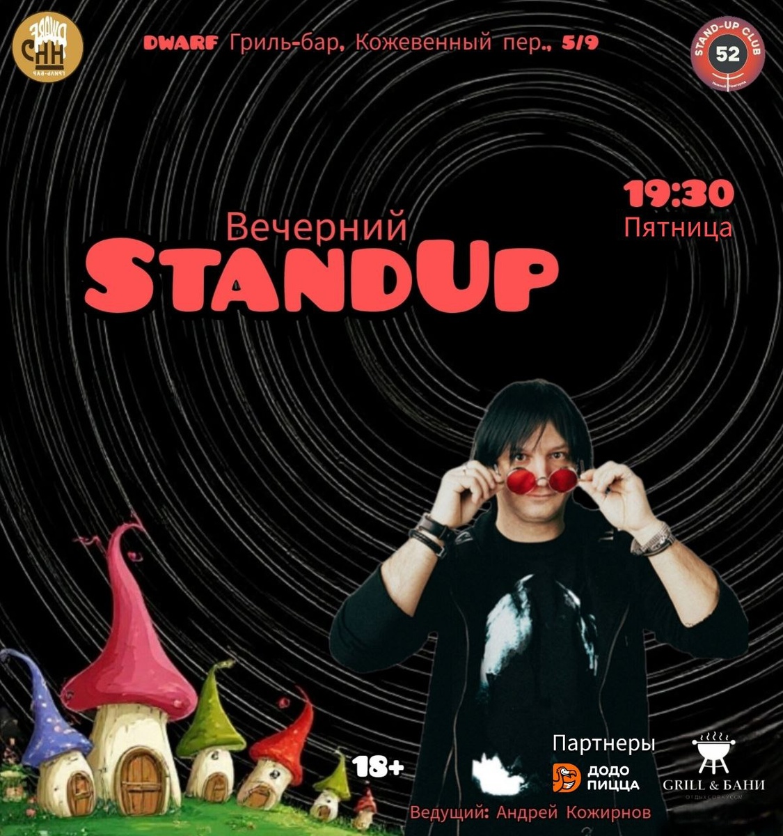 👉 20 февраля (пт), 19:30 👉 DWARF Гриль-бар, Кожевенный пер., 5/9 Вход: 600 руб (18+) Билеты: https://nnovgorod.qtickets.events/212273-vecherniy-standup. 👉 Выступают крутые стендап-комики, участники всевозможных Ютуб-проектов, Резиденты Нижегородского стендап клуба. Это вечер юмора и хорошего настроения! Что может быть лучше?! Приходи, кайфуй и смейся! Стендап - это жизнь, боль и умение посмеяться над самим собой. ° Для связи: +7 (930) 292-77-55. 👉 Среди зрителей разыгрываем сертификат на большую пиццу! Правила в группе ВК организатора. 👉 Мы делаем комедию в регионе. Наши соц сети: taplink.cc/standupclub52, подписывайся и будь в курсе. ° Ведущий: Андрей Кожирнов