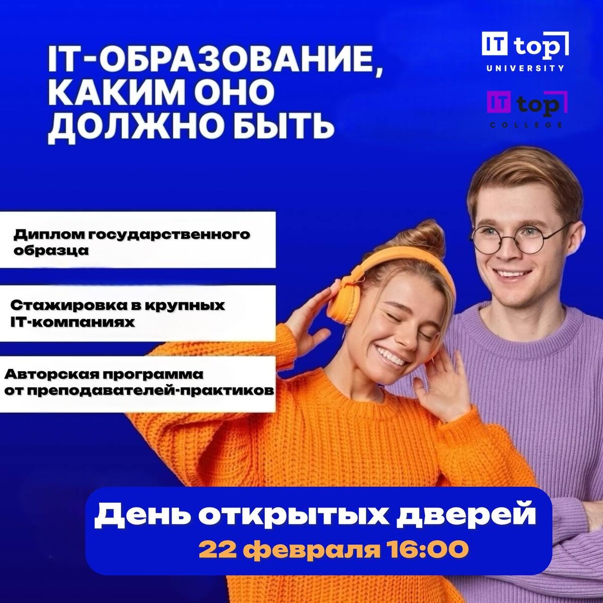 ! 🍂Университет и IT Колледж Академии ТОП приглашает вас посетить день открытых дверей. 🗓 22 февраля 16:00 📍 ул. Итальянская, 2 👥 16-20 лет День открытых дверей в университете информационных технологий «Академия TOП» 👥 14-20 лет День открытых дверей в колледже Академия ТОП 📌 Сейчас — лучшее время посетить день открытых дверей, чтобы обеспечить себе место в группе и уверенно войти в новый учебный год. Бесплатно по регистрации на сайте 📞 +78126026696