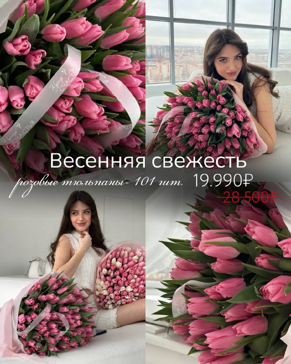 🌷 Курьер Счастья открывает ранние предзаказы к 8 марта💐 Сейчас-идеальное время для того, чтобы позаботиться заранее о выборе весеннего букета тюльпанов для себя и своих близких по самым выгодным ценам Мы знаем, что для наших клиентов важна не только красота, но и сервис! Поэтому мы с вниманием подходим к деталям, чтобы каждый букет был на высшем уровне💐 🎁Почему стоит заказать сейчас? — «Вкусные» цены на самые свежие и яркие тюльпаны — Персональные предложения для наших постоянных клиентов — Раннее бронирование нужных оттенков тюльпанов для выбранного букета 💬 Напишите в наш telegram-бот @courrierofhappiness_bot слово "ВЕСНА", и мы отправим вам ещё больше выгодных предложений!