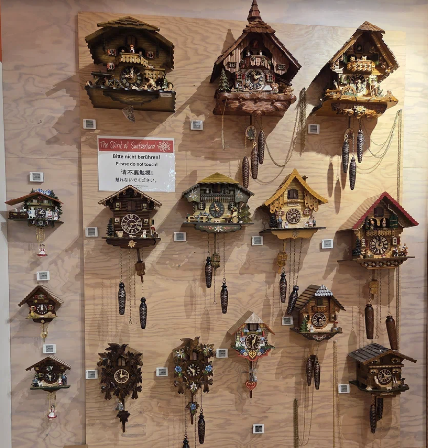 В швейцарском аэропорту Цюриха я увидела то, от чего мы все уже отвыкли - настенные часы-ходики! Целая стена была украшена миниатюрными домиками со множеством деталей. Вы только посмотрите, какая милота! Многие из них еще и тикали! Всё-таки такие часики смотрятся намного более уютно, чем сегодняшние минималистичные или электронные. А вам нравятся такие часы? Есть ли у вас настенные часы?