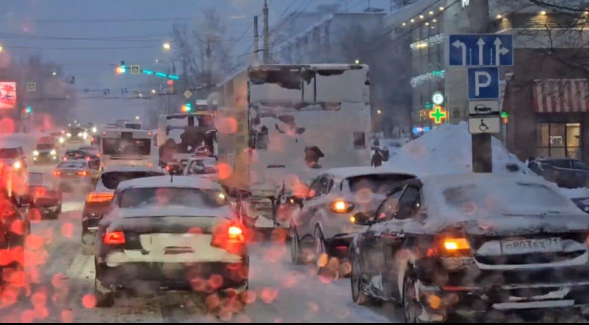 В Туле пробка перед улицей Пузакова из-за нарушений правил парковки