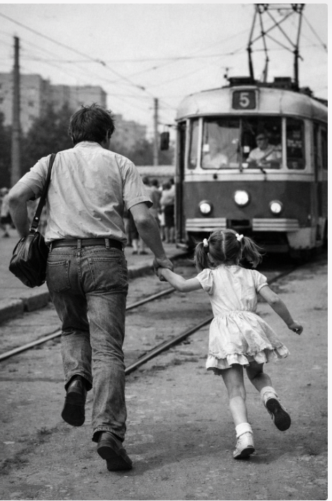 -Папка, смотри, наш трамвай, - тянет его за руку Юля, Виктор бросает недокуренную сигарету, подхватывает на руки дочь и бежит к приближающемуся трамваю.