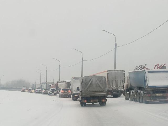 Из-за ухудшения погоды в Волгограде продолжается действие запрета на движение грузового транспорта. Судя по текущей погоде и продолжающемуся снегопаду, отмена ограничений в ближайшее время маловероятна. По данным сервиса «Яндекс», в Волгограде сейчас 7-балльные пробки. Особенно остро ситуация выглядит на мосту через Волгу. Очевидцы сообщают РИАЦ о скоплении большегрузов в Средней Ахтубе. Фуры припаркованы у обочины из-за введенных ограничений, водители ждут своего часа. Напомним, запрет на движение грузовых транспортных средств введен в Волгограде 19 февраля с 10.00. Решение об ограничении приняла мэрия из-за неблагоприятных погодных условий. Оно будет действовать до особого распоряжения. На Волгоград внезапно обрушился снегопад