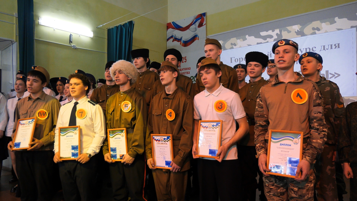 В Доме детского творчества прошел конкурс среди юношей Коллектив Дома детского творчества проводит конкурс ежегодно. В этом году шесть его участников представили визитную карточку и инсценировку песен военных лет, чистили картофель, переносили карту местности на планшет, в конкурсе «Богатырская сила» удерживали на вытянутой руке стул. По решению жюри первое место занял Арсений Шабалин (школа №1). На втором - Матвей Снытко (гимназия № 5), на третьем месте – Дамиль Гатауллин (школа № 7). Спонсорами конкурса выступили председатель местного отделения ДОСААФ Александр Константинов и директор ДЮСШ «Самбо-75» Алексей Никитин. Они предоставили победителям денежные сертификаты и подарочные сертификаты на посещение бассейна.