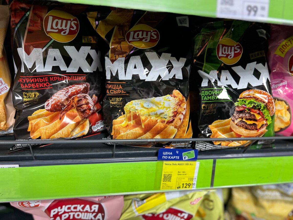 Ну что, прощай диета, зато здравствуй хрустящее счастье с мощным вкусом пиццы и крылышек! 🍕🍗 Эти рифленые красавчики Lay's Maxx сейчас по карте лояльности стоят 129 рублей, так что можно смело брать сразу две пачки про запас. Идеальный вариант под вечерний сериал, только никому не говорите, что съели всё сами 🤫.