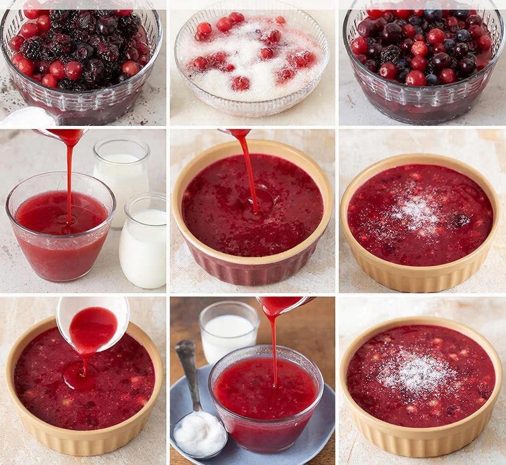 Сегодня мы поделимся с вами рецептом, который позволит насладиться настоящим ягодным волшебством, сохранив максимум пользы и витаминов. Этот рецепт основан на использовании сочных ягод, таких как смородина, клюква, черника, а также других даров природы: брусники, голубики, земляники, ежевики или малины. Главное преимущество этого метода – максимальное сохранение цвета, аромата и витаминов, благодаря особому подходу к приготовлению. Быстрое охлаждение – сохраняем яркость:Сразу же после приготовления посыпьте поверхность киселя тонким слоем сахара. Это поможет предотвратить образование пленки и сохранит яркий цвет.