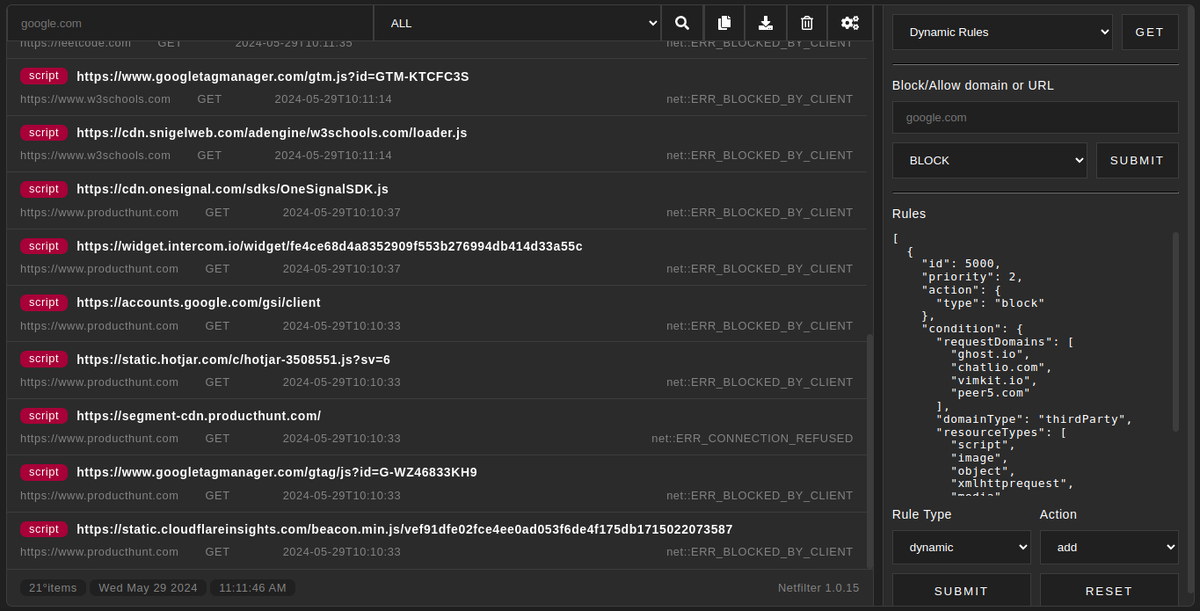 Netfilter — это мощное и легковесное расширение для браузеров, предназначенное для комплексной очистки веб-страниц от навязчивой рекламы, скриптов отслеживания и вредоносных элементов. Инструмент разработан с упором на производительность и конфиденциальность, обеспечивая безопасный и комфортный серфинг без лишнего визуального шума. - Комплексная блокировка: Эффективно устраняет баннеры, видеорекламу, всплывающие окна (pop-ups) и другие виды маркетингового контента. - Защита от скрытых угроз: Автоматически блокирует майнеры криптовалют и скрипты, использующие ресурсы вашего устройства без разрешения. - Обход антиблокировщиков: Успешно справляется с назойливыми уведомлениями и скриптами, требующими отключить блокировщик рекламы для доступа к сайту. - Фильтрация трекеров: Предотвращает работу аналитических систем и жучков, собирающих данные о поведении пользователя в сети. - Блокировка вредоносных ресурсов: Ограничивает доступ к сайтам, распространяющим вредоносное ПО или замеченным в фиш