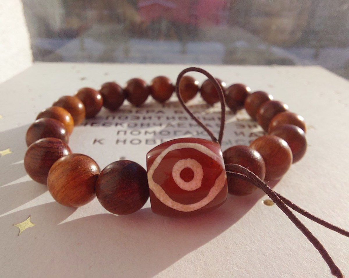" В сакральные поворотные точки года всегда приходят супермощные обереги. Тут сразу три собралось по мощным нисходящим потоком ( самым мощным в году !!!!) Этот первым покажу Розовое дерево , да у него есть пряный аромат , но розами точно не пахнет. Работает как заземлитель , элемент муладхара чакры ... разгрузит голову, освободит от лишних мыслей. Агатовая Бузина ДЗИ "ОКО" ... наделена энергией Танцующего Шивы, будет приглядывать за тобой, оберегать тебя и разрушать все негативное: планы врагов, недоброе воздействие ...а главное - твои собственные вредные привычки, программы поведения, отжившие сценарии по роду... и прочее с чем сложно справиться в одиночку. На амулете не зафиксирована длина ( видно резинку ) могу зафиксировать на любой обхват запястья. Идеальный подарок для твоего Мужчины на 23 февраля ( защита для него самого) Девочкам тоже подойдёт... я себе сделала похожий 😉 Ценность обмена энергией 3333 руб Пиши , если он твой 🧿