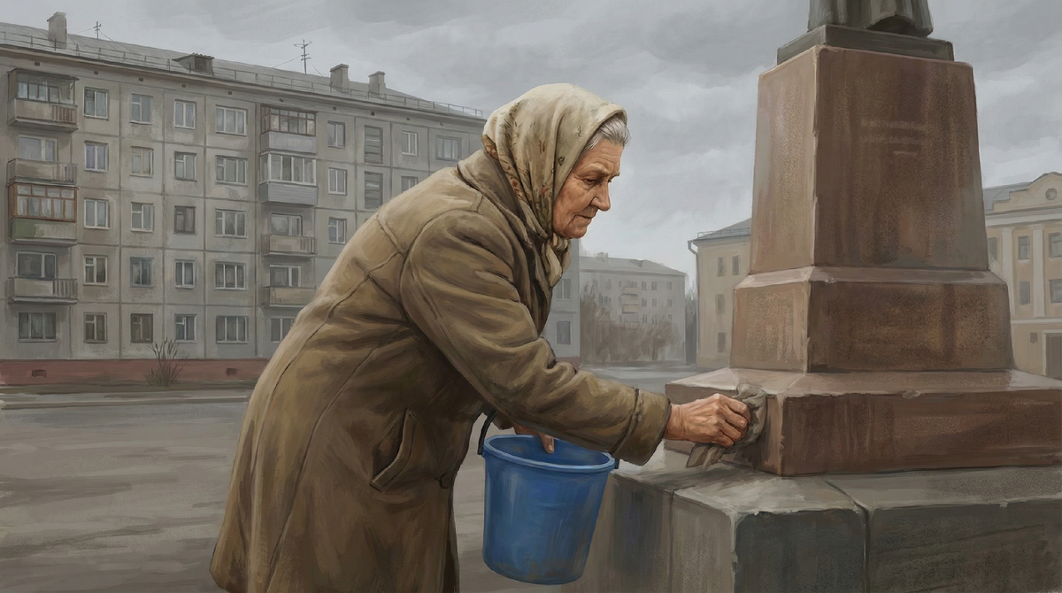Я увидела бабушку с ведром в семь утра. Она стояла у памятника на площади Труда, тёрла серой тряпкой гранитный постамент, и мне тут же захотелось развернуться и уйти. Потому что я знала – сейчас кто-нибудь из прохожих посмотрит, покрутит пальцем у виска. И будет прав.