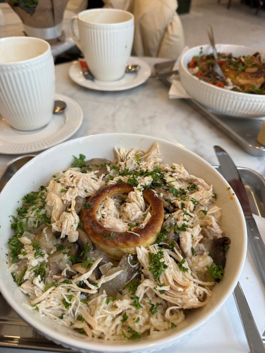 Берлин, холодное субботнее утро. Лёгкий снег, мороз щиплет щёки. Мы с подругой просто ищем место, куда можно зайти позавтракать, без плана и ожиданий. На тихой улице нам попадается небольшое французское кафе La Pause. Внутри тепло. За столиками сидят семьи, родители с детьми, кто-то читает, кто-то спокойно разговаривает. В меню — традиционные французские блюда, без экспериментов и сложных описаний. Мы заказываем bouchée à la reine. Контраст между холодом снаружи и уютом внутри ощущается сразу. Bouchée à la reine в переводе означает «корзиночка для королевы». Это блюдо появилось во Франции в XVIII веке и относится к придворной кухне времён Людовика XV. Его чаще всего связывают с королевой Марией Лещинской, супругой короля, чьи гастрономические вкусы считались сдержанными и довольно простыми по меркам двора. В отличие от пышных и демонстративных блюд той эпохи, bouchée à la reine строится на мягкости и балансе. Основа — волован из слоёного теста, внутри которого находится нежное рагу. Тр