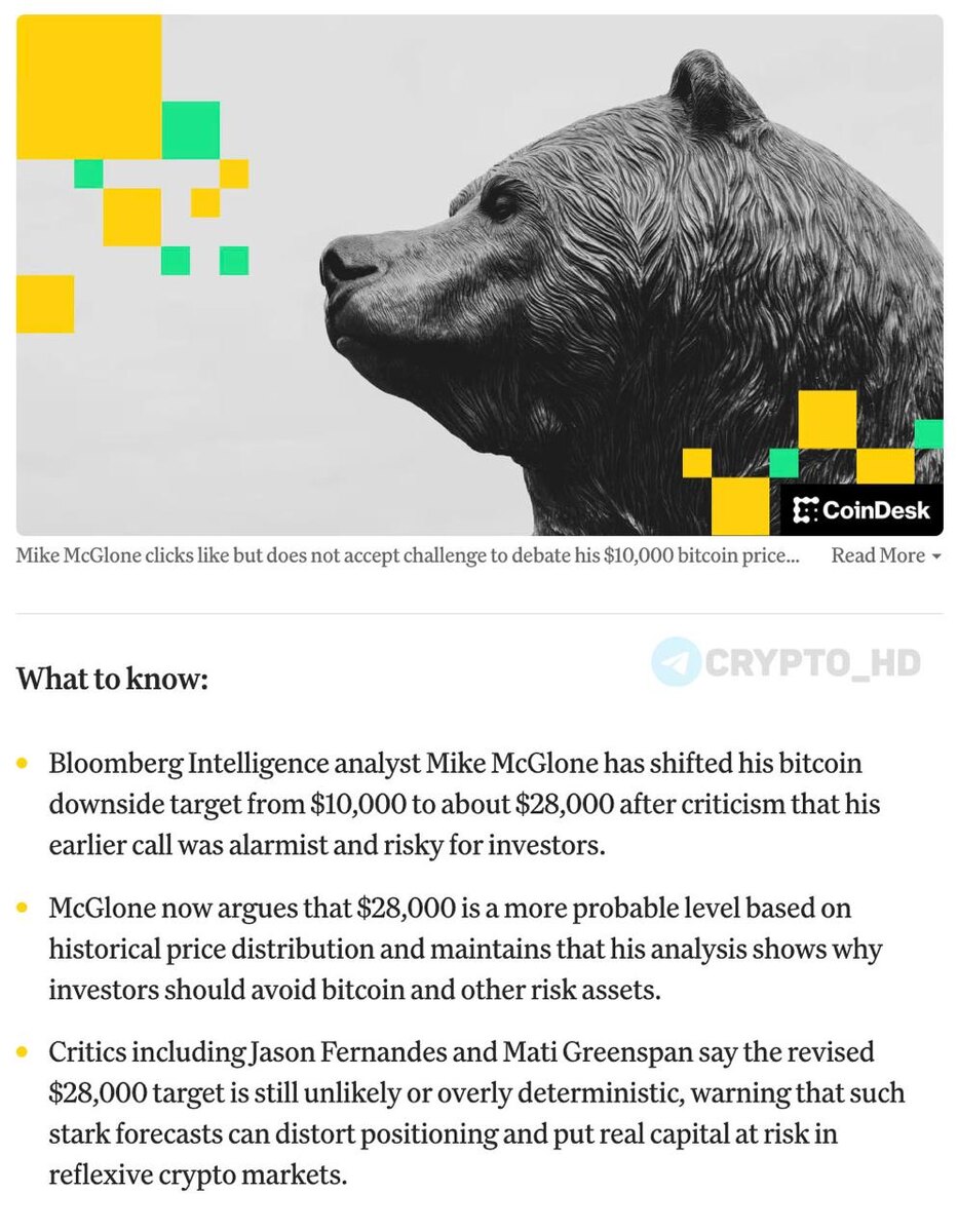 Π½ΡΡΡ Π΄ΠΎ $10,000 Π½Π° ΡΠΎΠ½Π΅ ΡΠ΅ΡΠ΅ΡΡΠΈΠΈ ΠΈ ΠΎΠ±Π²Π°Π»Π° Π°ΠΌΠ΅ΡΠΈΠΊΠ°Π½ΡΠΊΠΎΠ³ΠΎ ΡΠΎΠ½Π΄ΠΎΠ²ΠΎΠ³ΠΎ ΡΡΠ½ΠΊΠ°. β€ ΠΠΎΠ»Π»Π΅Π³ΠΈ ΠΎΡΡΠ΅Π°Π³ΠΈΡΠΎΠ²Π°Π»ΠΈ ΠΆΠ΅ΡΡΠΊΠΎ: Π°Π½Π°Π»ΠΈΡΠΈΠΊ ΠΠ°ΡΠΈ ΠΡΠΈΠ½ΡΠΏΠ°Π½ ΠΏΡΠ±Π»ΠΈΡΠ½ΠΎ Π½Π°Π·Π²Π°Π» ΠΏΡΠΎΠ³Π½ΠΎΠ· Π±Π΅ΡΡΠΌΡΡΠ»ΠΈΡΠ΅ΠΉ β Π°ΠΊΡΠΈΠ² Ρ ΡΡΠΈΠ»Π»ΠΈΠΎΠ½Π½ΡΠΌΠΈ ΠΌΠ΅ΡΡΡΠ½ΡΠΌΠΈ ΠΎΠ±ΡΠ΅ΠΌΠ°ΠΌΠΈ Π½Π΅ ΡΠ½ΠΈΠ·ΠΈΡΡΡ Π΄ΠΎ ΠΊΠ°ΠΏΠΈΡΠ°Π»ΠΈΠ·Π°ΡΠΈΠΈ $200b Π±Π΅Π· ΠΏΠΎΠ»Π½ΠΎΠ³ΠΎ ΠΊΠΎΠ»Π»Π°ΠΏΡΠ° ΡΠΈΠ½Π°Π½ΡΠΎΠ²ΠΎΠΉ ΡΠΈΡΡΠ΅ΠΌΡ. β€ ΠΠΆΠ΅ΠΉΡΠΎΠ½ Π€Π΅ΡΠ½Π°Π½Π΄Π΅Ρ ΡΡΠΈΡΠ°Π΅Ρ, ΡΡΠΎ Π½Π° ΡΠ΅ΡΠ»Π΅ΠΊΡΠΈΠ²Π½ΠΎΠΌ ΠΊΡΠΈΠΏΡΠΎΡΡΠ½ΠΊΠ΅ Π³ΡΠΎΠΌΠΊΠΈΠ΅ ΠΌΠ΅Π΄Π²Π΅ΠΆΡΠΈ ΠΏΡΠΎΠ³Π½ΠΎΠ·Ρ ΡΠ°ΠΌΠΈ ΠΏΠΎ ΡΠ΅Π±Π΅ Π΄Π°Π²ΡΡ Π½Π° ΡΠ΅Π½Ρ. ΠΠ°ΡΠ΅ΠΌ ΠΎΠ½ ΠΈ Π²ΠΎΠ²ΡΠ΅ Π²ΡΠ·Π²Π°Π» ΠΠ°ΠΊΠΠ»ΠΎΡΠ½Π° Π½Π° ΠΏΡΠ±Π»ΠΈΡΠ½ΡΠ΅ Π΄Π΅Π±Π°ΡΡ β Π½ΠΎ ΡΠΎΡ Π»Π°ΠΉΠΊΠ½ΡΠ» Π²ΡΠ·ΠΎΠ² ΠΈ ΠΏΡΠΎΠΌΠΎΠ»ΡΠ°Π». β€ ΠΠΎΠ΄ Π΄Π°Π²Π»Π΅Π½ΠΈΠ΅ΠΌ ΠΠ°ΠΊΠΠ»ΠΎΡΠ½ ΡΠΊΠΎΡΡΠ΅ΠΊΡΠΈΡΠΎΠ²Π°Π» ΡΠ°ΡΠ³Π΅Ρ Π΄ΠΎ $28,000, ΠΎΠΏΠΈΡΠ°ΡΡΡ Π½Π° ΠΈΡΡΠΎΡΠΈΡΠ΅ΡΠΊΠΈΠ΅ ΡΡΠΎΠ²Π½ΠΈ ΠΏΠΎΠ΄Π΄Π΅ΡΠΆΠΊΠΈ. ΠΠΏΡΠΎΡΠ΅ΠΌ, ΠΊΡΠΈΡΠΈΠΊΠΈ ΠΈ ΡΡΠΎΠ³ΠΎ Π½Π΅ ΠΎΡΠ΅Π½ΠΈΠ»ΠΈ. Crypto Headlines