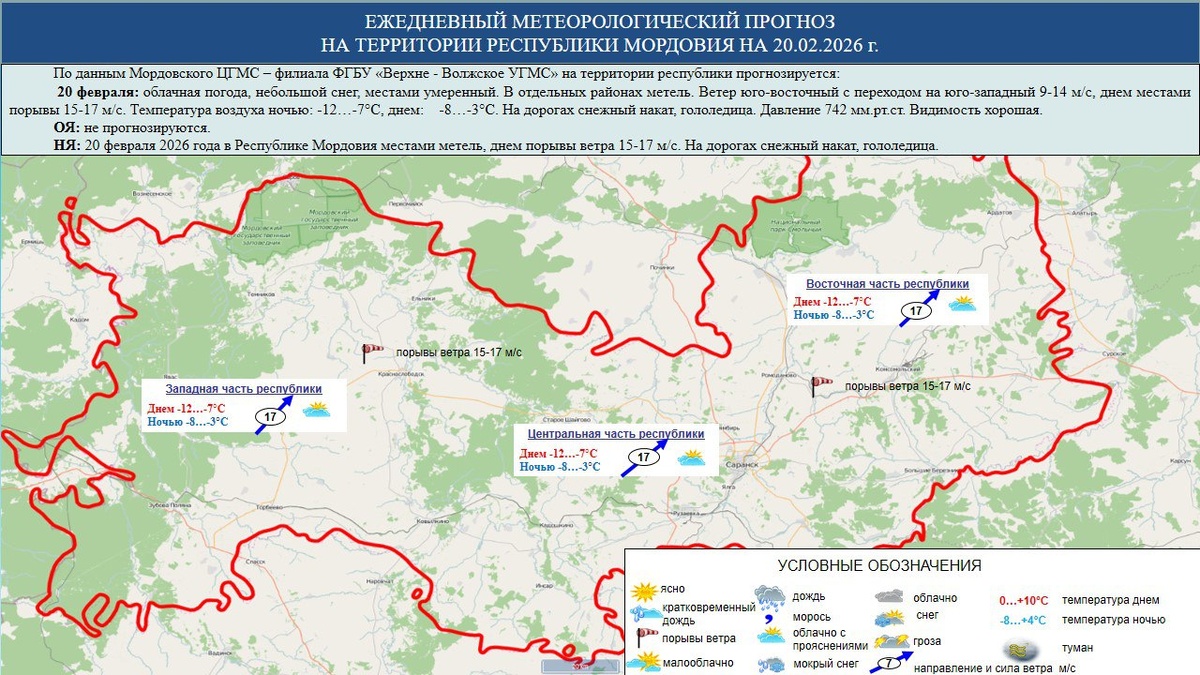 ☁️⛅⛈️ 20 февраля в Мордовии облачная погода, небольшой снег, местами умеренный