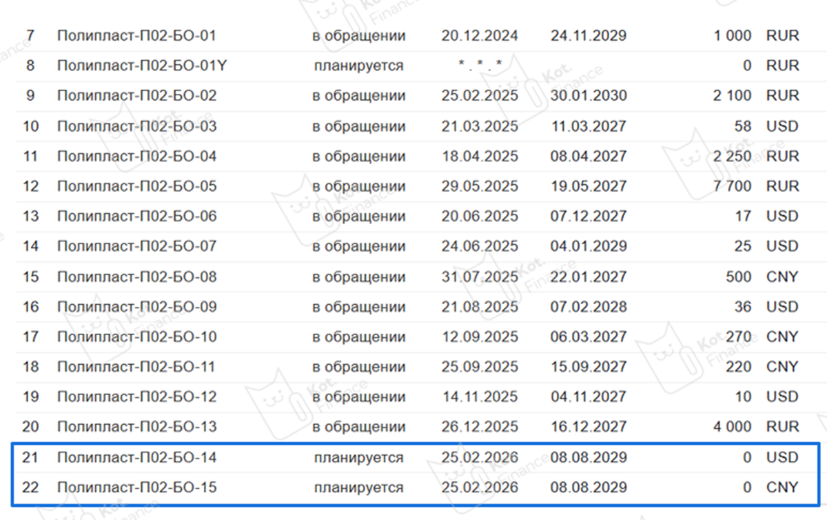 На размещении 2 выпуска • Купон: 12,25% для юаня и 12,75% для доллара, купоны ежемесячно • Доходность: 13-13,5% годовых • Амортизация: - • Срок: 3,5 года 👍наконец появились длинные облигации в CNY (отлично для ЛДВ – почему важно для валютных выпусков?) • Объем: $0,15 млрд • Рейтинг: А (АКРА, НКР) ❓ Как связан рейтинг и дефолт? 👍Плюсы + высокий рейтинг «А», стабильный прогноз от АКРА + выпуск в валюте, подходит под ЛДВ, в юанях срок больше трех лет редкость ❗️Риски - Полипласт зачастил с размещениями: или долг растет, или компания распробовала необеспеченные облигации и замещает кредиты под залог - высокий долг: >170 млрд. при капитале 37, из которого 12 – гудвил в активах. >40 млрд уже в облигациях - неизвестные акционеры: в раскрытии Ковалев Александр (20%) и LAIKAVI HOLDINGS LIMITED (80%). Акционер информацию о себе не раскрыл - падающий рынок: основной сбыт на строительную отрасль, которая со второго полугодия 2024 снижается - крепкий курс рубля создает сложности для всех экспорте