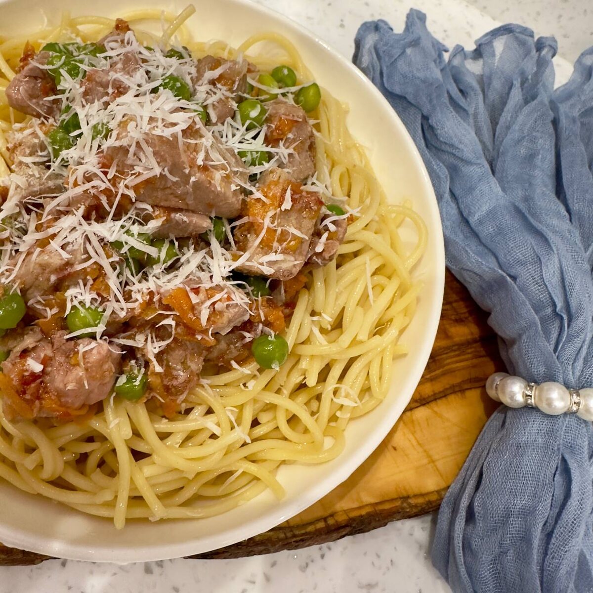 ЗЕЛЕНЫМ ГОРОШКОМ ❣️Филе бедра индейки 500г ❣️Морковь натертая 100г ❣️Лук 1 шт ❣️Зеленый горошек ( замороженный) 200г ❣️Замороженное томатное пюре 50г ( моя заготовка) ❣️Соль,перец,специи. В казане обжариваем лук,морковь и порезанную кубиком Индейку. Добавляем томатное пюре,соль,специи По необходимости добавить воды. Тушить до готовности ‼️Подаем с любым гарниром. У меня Спагетти! ❣️Посыпаем тертым Пармезаном! #бархатныйрецепт #паста #индейка Мой 👉 MAX ✨✨✨✨✨✨✨✨✨
