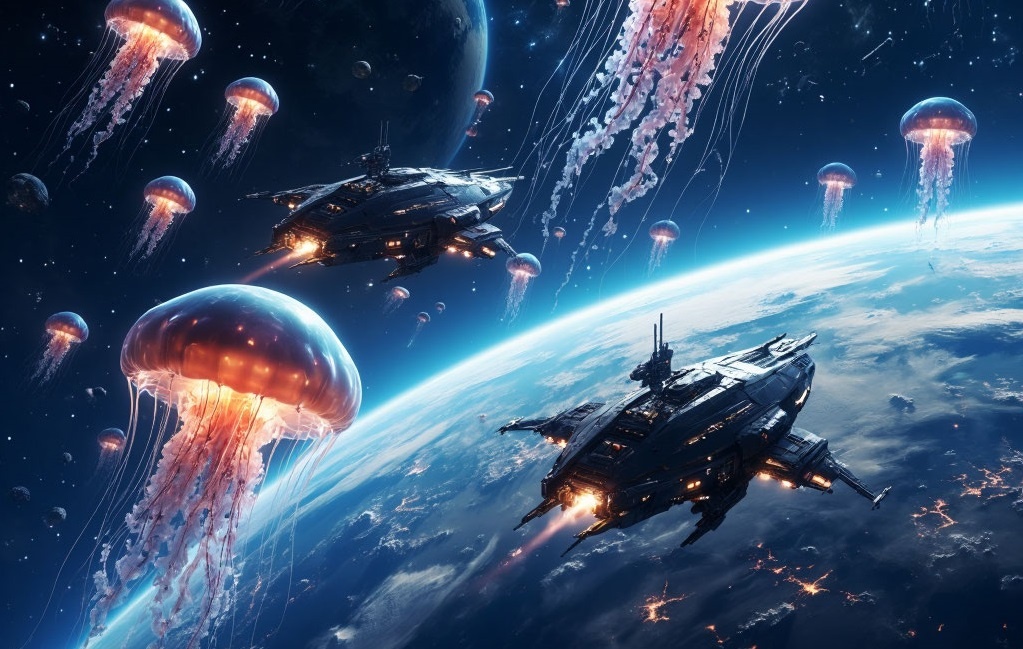 И тут – бац! Из глубин Млечного Пути выплывают они – те самые ксилари. Выглядели – ну чисто гигантские медузы. Полупрозрачные купола-головы переливаются, щупальца с какими-то излучателями шевелятся. А по всем частотам так громко и чётко: «Мы – ксилари. Ваш сектор теперь наш».