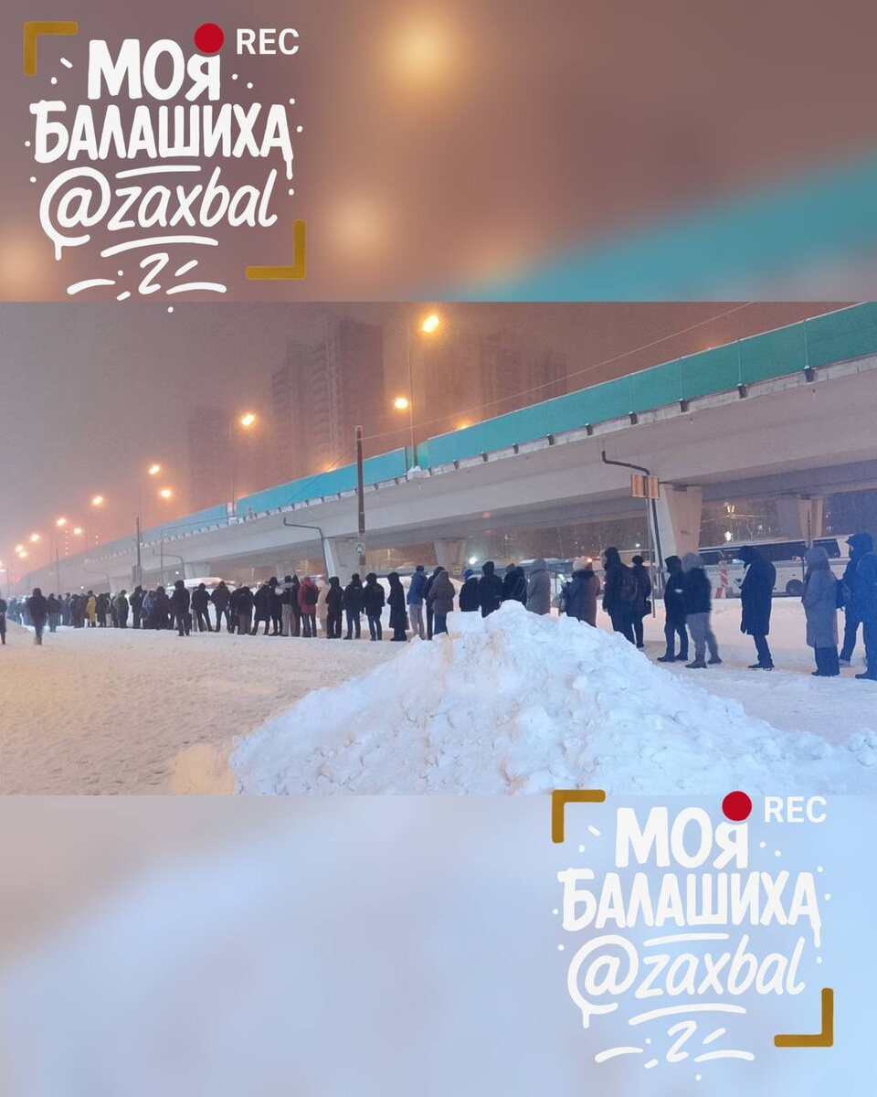 На Щелковском шоссе люди покидают маршрутный транспорт и пешком идут в Балашиху