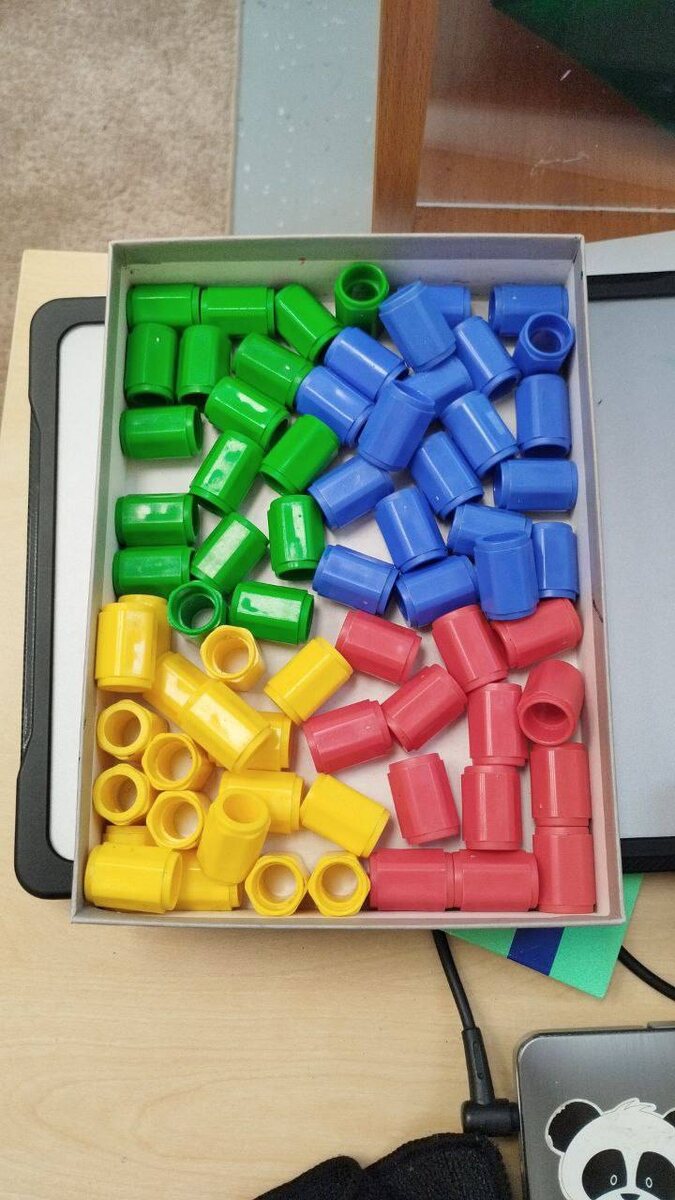 😉 Нельзя просто так взять и после урока свалить Нумикон в коробку. Ученики-нормотипики спешат на перемену, и если не забывают убирать за собой учебные материалы (у нас принято убирать за собой после занятий), то сваливают их кучей. Причем это нормально, так делают все и всегда. Но только не наши дети. 🤭Если вижу, что детали рассортированы и строго типированы, значит, занимался кто-то из наших.