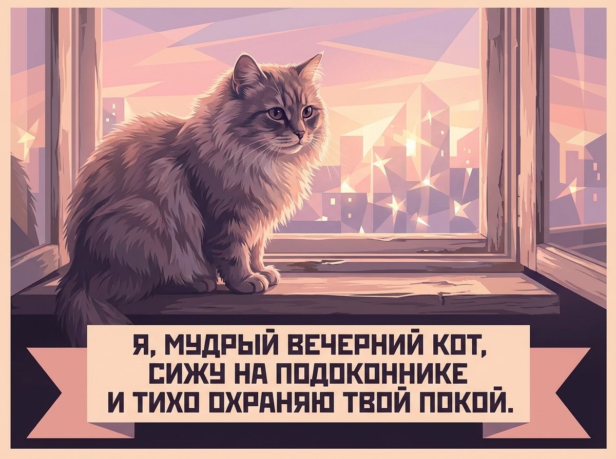 Я, мудрый вечерний кот, сижу на подоконнике и тихо охраняю твой покой