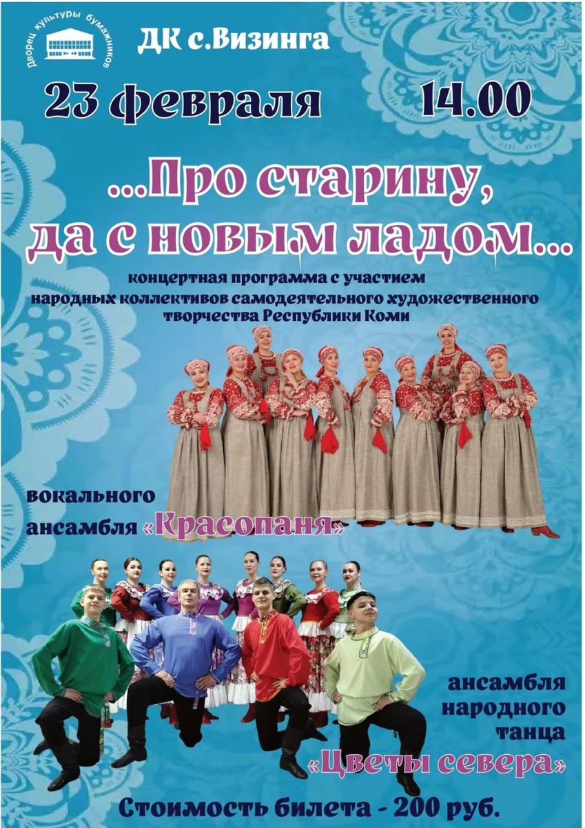 ! Π ΠΏΠΎΠ½Π΅Π΄Π΅Π»ΡΠ½ΠΈΠΊ, 23 ΡΠ΅Π²ΡΠ°Π»Ρ, Π² 14 ΡΠ°ΡΠΎΠ², β ΡΠ½ΠΈΠΊΠ°Π»ΡΠ½Π°Ρ Π²ΡΡΡΠ΅ΡΠ°! ΠΡΡΡΡΠΏΡΡ Π½Π°ΡΠΎΠ΄Π½ΡΠ΅ ΠΊΠΎΠ»Π»Π΅ΠΊΡΠΈΠ²Ρ ΠΈΠ· ΠΠΆΠ²ΠΈΠ½ΡΠΊΠΎΠ³ΠΎ ΠΠ²ΠΎΡΡΠ° ΠΊΡΠ»ΡΡΡΡΡ ΡΡΠΎΠ»ΠΈΡΡ ΠΠΎΠΌΠΈ β Π²ΠΎΠΊΠ°Π»ΡΠ½ΡΠΉ Π°Π½ΡΠ°ΠΌΠ±Π»Ρ Β«ΠΡΠ°ΡΠΎΠΏΠ°Π½ΡΒ» ΠΈ Π°Π½ΡΠ°ΠΌΠ±Π»Ρ ΡΠ°Π½ΡΠ° Β«Π¦Π²Π΅ΡΡ ΡΠ΅Π²Π΅ΡΠ°Β». ΠΠ΅ΡΠ΅ΠΆΠ½ΠΎ Ρ
