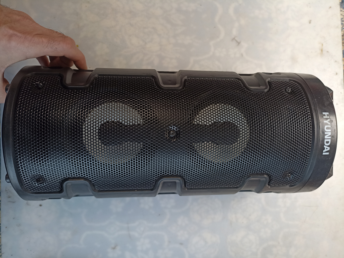 Сегодня у нас на ремонте портативная колонка Hyundai h-mc160 с диагнозом отключается. По факту при включении действительно работает пару минут и глохнет.