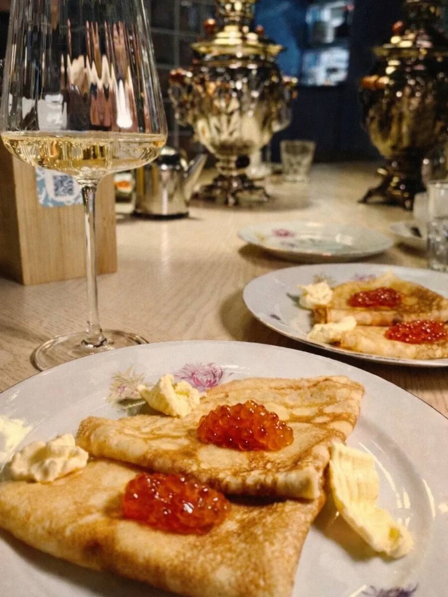 🥞 «Вихри» Блины с икрой и сливочным маслом (490 ₽), блинчики с начинками: мясо с хрустящим луком или грибы в сливках (375 ₽) и большой сладкий сет с самоваром чая (1350 ₽). К каждому блюду идет комплемент от бренда «Онегин»: 40 мл водки или ягодной настойки Gourmet. 📍 Тележная ул., 21 🥞 «Косуля» Блины с тартаром из кижуча и сметаной (380 ₽), грибным жульеном (390 ₽), копченой брынзой и ветчиной (360 ₽), красной икрой, яйцом, луком и сметаной (790 ₽), яблоком, карамелью и пломбиром (450 ₽). 📍 Караванная ул., 24-26 🥞 «Хоровод» Всю неделю блины – бесплатно! А любые добавки можно выбрать и приобрести по вкусу. 📍 ул. Некрасова, 58 Подписывайся на Пойдем выпьем