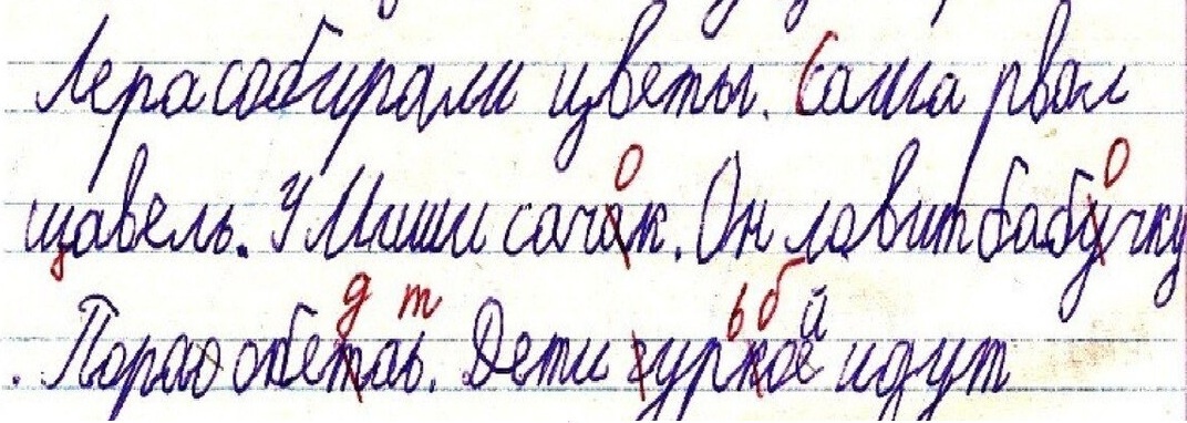 - несогласованность членов предложения в роде, числе и падеже Процесс письма относится к сложной форме вербальной активности, включающей разные уровни восприятия и обработки информации. Оно непосредственно взаимосвязано с развитием устной речи и успешно реализуется лишь при условии сформированного уровня последней. Игнорируя вовремя появившиеся ошибки и не принимая меры профилактики, существует риск формирования устойчивых ошибок письма, переходящих в категорию серьезных нарушений письменной речи — дисграфию. Предупредить возможные отклонения помогают упражнения, направленные на совершенствование мелкой моторики рук, координации движений, памяти, концентрации внимания, способности переключаться с одной задачи на другую и самоконтроля. Полезными являются такие виды заданий: