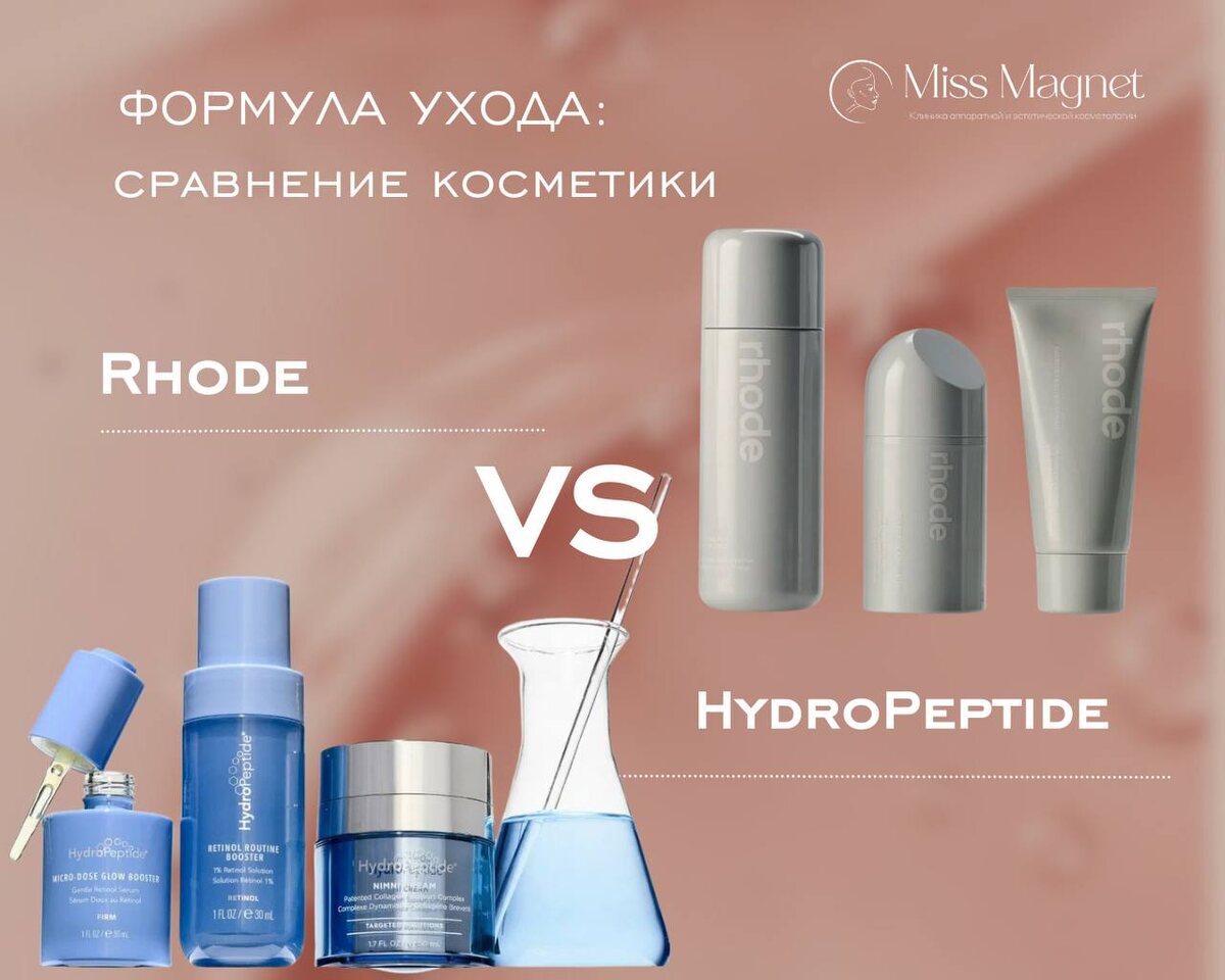 Rhode - это эстетика, минимализм и сила личного бренда Хейли Бибер. Производители делают ставку на glazed skin. Косметика хорошо увлажняет, дарит комфорт и сияние, подходит для поддерживающего ухода и молодой кожи без выраженных возрастных изменений. HydroPeptide - это доказательная космецевтика для кожи, где каждая формула работает на клеточном уровне: стимулирует синтез коллагена, повышает плотность, дает лифтинг и обновление, корректирует возрастные изменения. Бренд, который применяется для усиления результатов аппаратных и инъекционных процедур. Хотите подобрать домашний уход? Пишите «+» в комментариях, расскажем подробнее Сайт: https://missmagnet.ru Записаться или заказать космецевтику @missmagnet_clinic