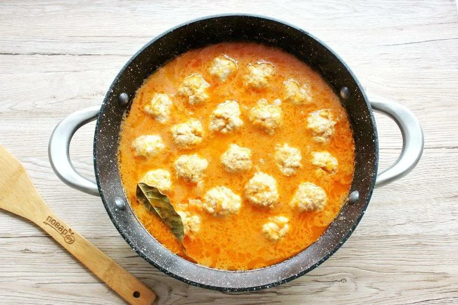 - Залейте соусом обжаренные фрикадельки.