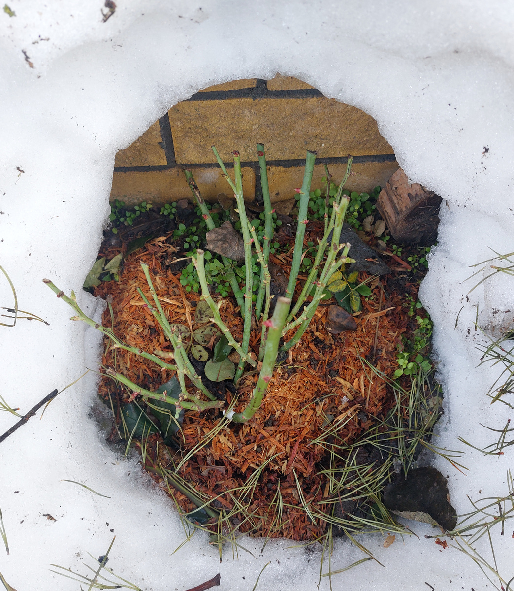Утром вышла, сняла пластиковую банку с розы, которой укрывала, а она стоит бодрая и готовая почки распустить.