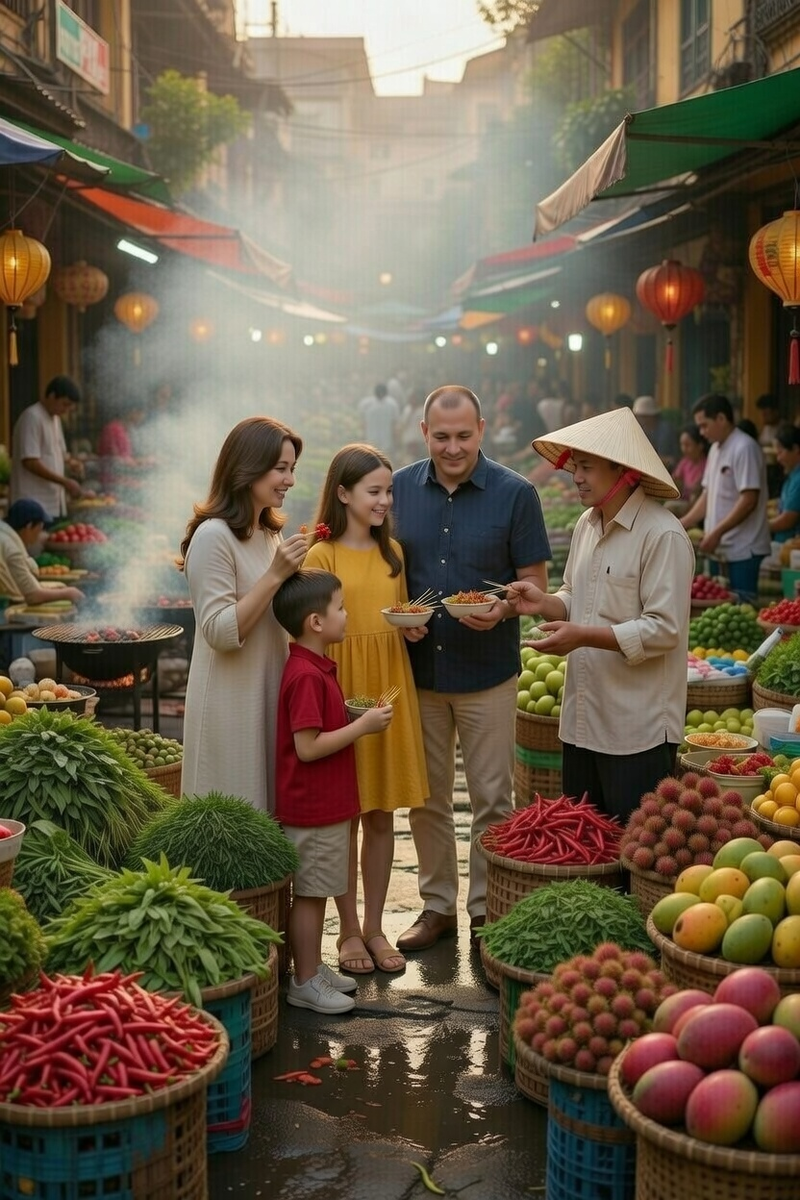 После той самой уборки, когда мы вынесли из дома Зыонга три мешка всякого хлама и отдраили полы до скрипа, он объявил: «Завтра идём на рынок. Без этого Тет не Тет». Жена обрадовалась: она обожает восточные базары. Дети запрыгали — они у меня за любой движ, кроме голодовки. А я подумал: «Ну рынок и рынок, что я рынков не видел?» Зря я так думал. Рынок назывался Донг Ба. Мы приехали туда в шесть утра, а там уже яблоку негде было упасть. Но главное — запахи. Представьте себе: кинза, жареный лук, рыба, сладкие пирожные, дым от мангалов, и над всем этим — густой, пряный дух звёздчатого аниса и корицы. Зыонг вёл нас через толпу, как ледокол. Останавливался у каждого второго прилавка и что-то объяснял продавцам по-вьетнамски. Те кивали, улыбались, совали нам в руки то кусочек чего-то, то чашку с бульоном. «Пробуйте, — командовал Зыонг. — Это не просто еда. Это — символы». Первое, что Зыонг купил, был какой-то зелёный квадратный свёрток размером с кирпич. «Это — бань чынг, — сказал он. — Главн