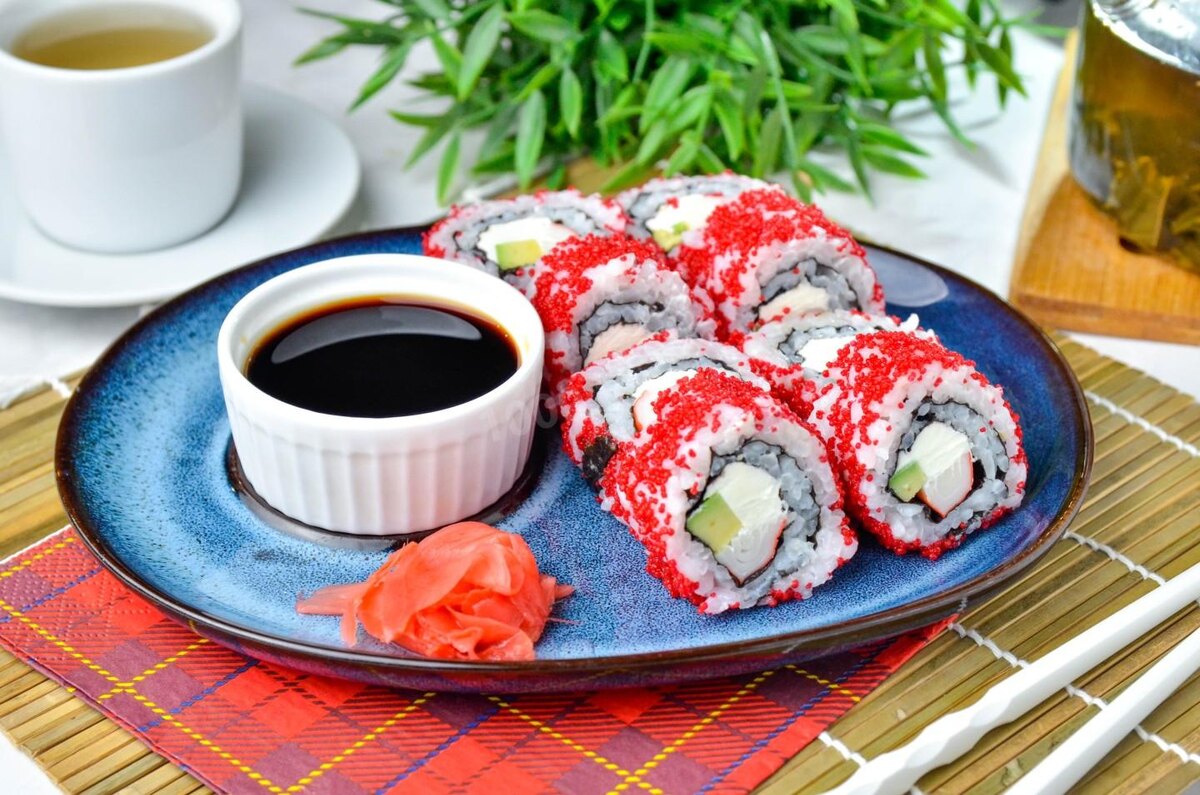 Красивые, эффектные, яркие как внутри, так и снаружи! Роллы Калифорния легко готовятся в домашних условиях и получаются ничуть не хуже ресторанных. Редкого и дорогого краба замените на крабовые палочки, а икру тобико — на икру мойвы Состав / ингредиенты Икра рыбная (мелкая икра летучей рыбы или мойвы) 100 гр Для риса: Круглый рис 1 стак. Вода 1.5 стак. Рисовый уксус 2 стол.л. Сахар 2 чайн.л. Соль1 чайн.л. Для начинки: Нори (4 листа)4 гр Авокадо0.5 шт. Крабовые палочки 4 шт. Творожный сыр 50 гр Оборудование и инструменты: Кастрюля Пищевая пленка Бамбуковый коврик Разделочная доска и нож Шаг 1. Как сделать домашние роллы Калифорния? Подготовьте продукты. Рис, если вы не найдете специальный для суши, подойдет любой круглый. Главное, чтобы он был не пропаренный. С выбором риса для роллов поможет статья по ссылке в конце рецепта. Вместо рисового уксуса вы можете использовать столовый 9%. Шаг 2. Как сварить рис для роллов? Первым делом отварите рис. Промойте крупу, залейте ее чистой холодной