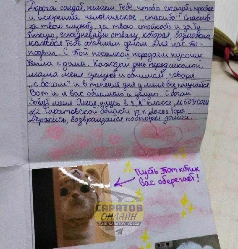 📝Письма школьницы из Саратовской области дважды попали в руки одного бойца