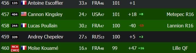 😂 На фото результаты теннисистов: Antoine Escoffier, Cannon Kingsley, Lucas Poullain, Andrey Chepelev и Moise Kouamé. Подпишись на Эйс и точка