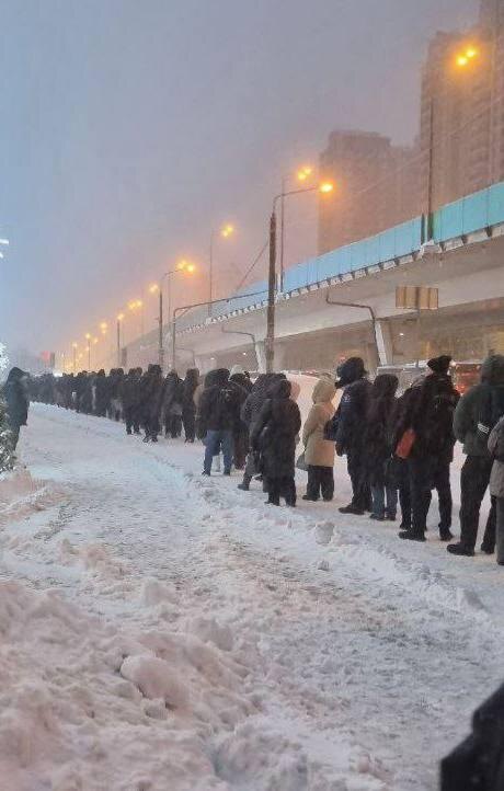 Не дождались автобуса»: Москву и Подмосковье парализовал транспортный коллапс. Шоссе Энтузиастов заблокировали фуры, людям приходится идти пешком. Серьезные пробки на МКАДе, Ярославском и Новорязанском шоссе. Грузовики перекрыли Щелковское шоссе. У станций метро - огромные очереди на автобусы в сторону области. По прогнозам синоптиков, циклон «Валли» останется в Москве до 9 утра пятницы. ⭕️ Подписаться | Мы в MAX | Буст