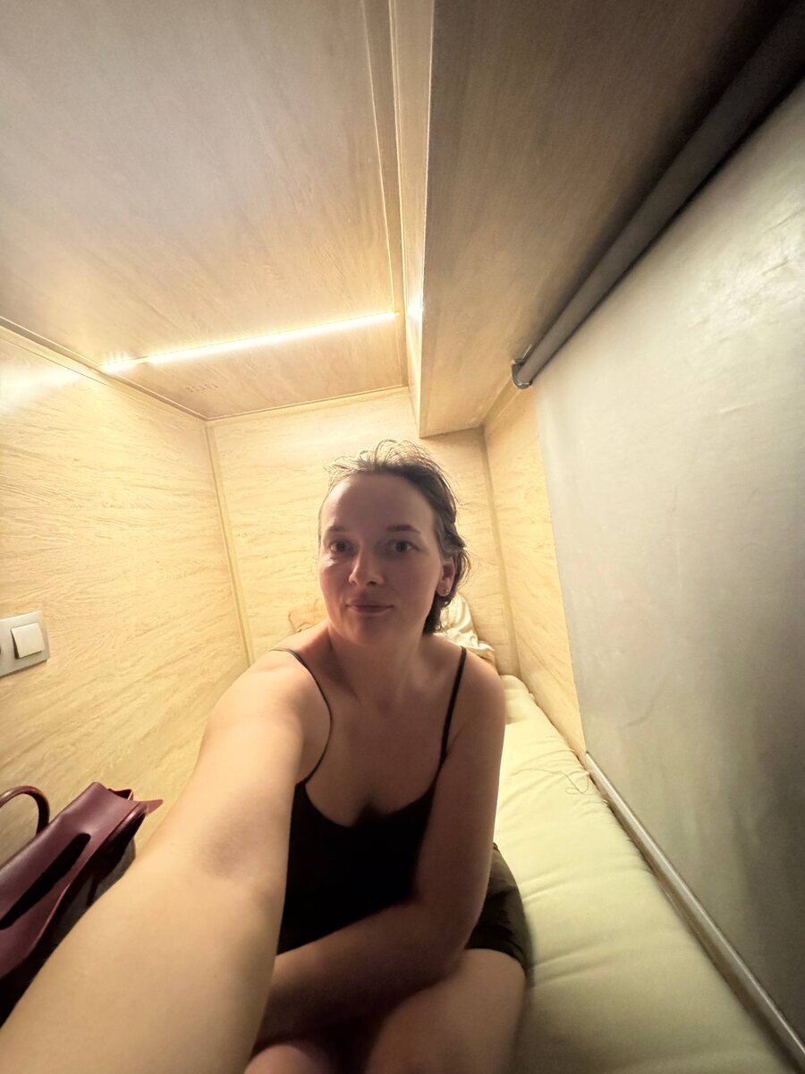 ! Обожаю такие приключения! У меня капсула с окном, хотя с учетом того, что я пришла в отель в 21.30 и мне бы уже просто спать, ибо я без задних ног, можно было сэкономить сколько-то рублей и без окна тоже было бы норм. Размер капсулы я измерила естестна🤓 Высота от матраса до потолка 1100, метрас см 10 я думаю. Ширина капсулы 100. Я могу сидеть, лежать, легко разделась, мне максимально комфортно. Про соседей и всякое такое не скажу, исследую эргономику, в наушниках тихо все) Очень удобно 👌🏻 Выбор такой не потому что стоит 1900, а потому что мне прикольно иногда такие эксперименты. И еще я сюда пешком от выставки пришла!! И завтра с утра продолжу выставку исследовать. Это реальный аргумент: пешая доступность к выставке.