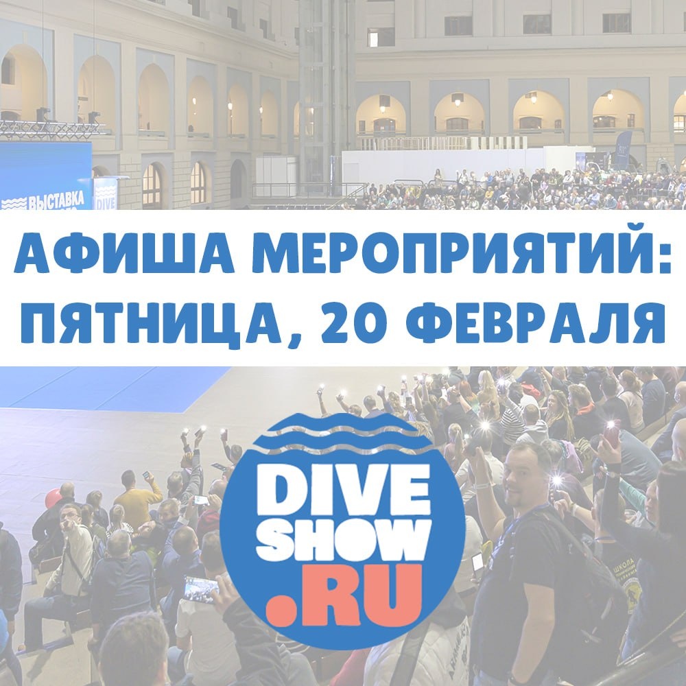 : Подготовили для вас удобное расписание насыщенной программы на сцене, в конференц-зале и на стендах участников👇 ✅ ФИЛЬМЫ НА БОЛЬШОМ ЭКРАНЕ: 🔹 10:00 - «Кругосветка 5 океанов», 2 серия: www.diveshow.ru/afisha/1072/ 🔹10:40 - «Глубина высоты 2025»: www.diveshow.ru/afisha/1053/ 🔹19:30 - «Дыхание глубины»: www.diveshow.ru/afisha/1069/ ✅ ГЛАВНАЯ СЦЕНА: 🔹 11:30 - Добавь смысла в дайвинг — сохрани океан: www.diveshow.ru/afisha/1056/ 🔹 12:00 - Филиппины: жизнь и дайвинг на Панглао: www.diveshow.ru/afisha/1057/ 🔹 12:30 - 5000 метров под ледяным покровом. Стресс-тест снаряжения и человеческих возможностей: www.diveshow.ru/afisha/1129/ 🔹13:00 - Отражение Балтийского неба: www.diveshow.ru/afisha/1058/ 🔹13:30 - На приёме у водолазного врача. Презентация книги и разбор реальных кейсов: www.diveshow.ru/afisha/1059/ 🔹14:00 - Первая помощь на воде: www.diveshow.ru/afisha/1193/ 🔹14:30 - Вторая жизнь дайвера. Обратная сторона подводного кайфа: www.diveshow.ru/afisha/1061/ 🔹15:00 - Путь в