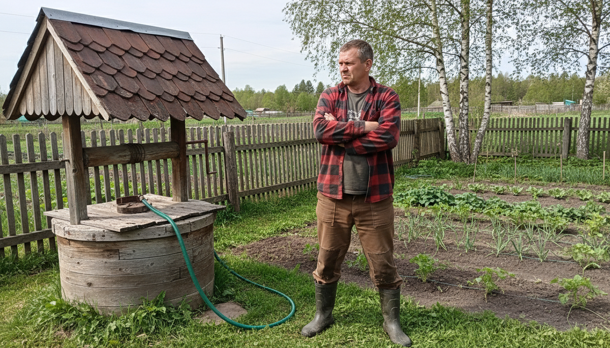 В один день иду к колодцу — а там шланг через весь огород тянется уже не к его участку, а куда-то дальше. Оказывается, он ещё и соседке напротив воду качает — за деньги! Я не поверил сначала. Потом сам видел: она ему что-то передаёт, он кивает, идёт качать.